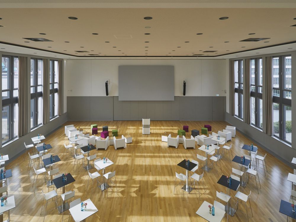 Ob Tagung oder Kongress – hier ist alles möglich. Führen Sie eine unvergessliche Veranstaltung in unserem lichtdurchfluteten Konferenzsaal mit bis zu 260 Personen durch! Ob in Reihenbestuhlung oder elegant kombiniert mit Hochtischen – die 330 m² große Aula eignet sich für Veranstaltungen jeglicher Art.